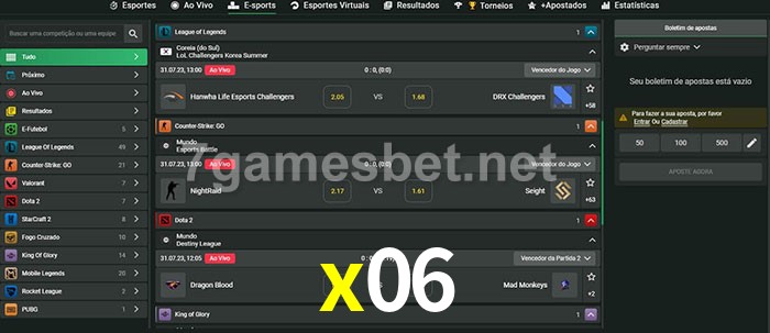 A aposta x06 oferece aos jogadores a experiência mais conveniente de apostas em eSports!